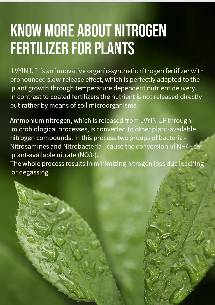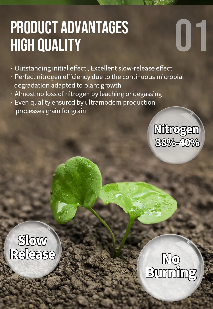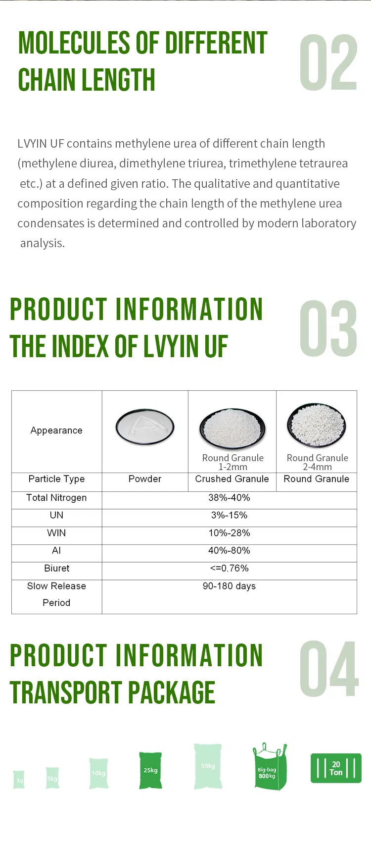 Our enterprise is a High-tech import and export specialist. Having obtained ISO9001 & IS014001 certification in 2006, our products have been recognized as key innovation projects. The main product line includes Urea Formaldehyde (UF/MU), slow-releasing fertilizers, Isobutylidene diurea (IBDU), and quick-soluble fertilizers tailored for sports lawns, landscaping, and economic crops.